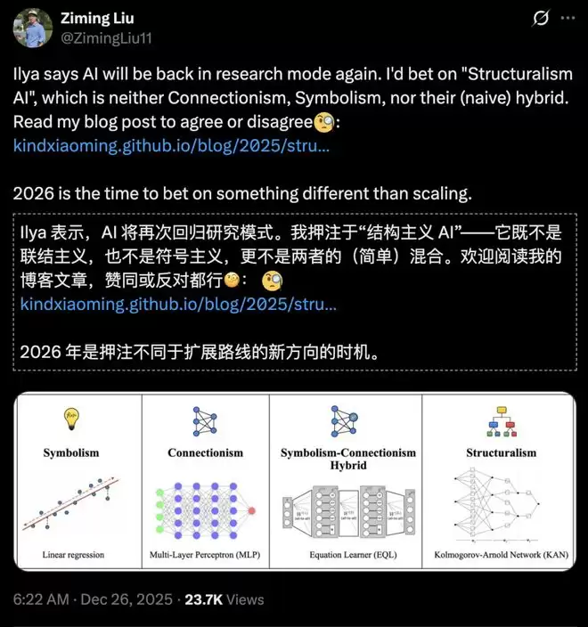 2025年圣诞节,斯坦福大学博士后、清华大学赴任助理教授刘子鸣把矛头对准了Scaling Law。