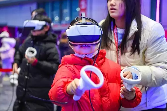 记者在现场看到,现场不乏一些“哥哥在比赛,弟弟妹妹游逛嘉年华”的家庭组合。来自上海的王思佳今年6岁,在等待哥哥比赛的间隙,在AI科普展的VR科普展区玩得不亦乐乎:“我以前在平板上玩过‘切西瓜’游戏,这是第一次戴上VR头显3D切西瓜,太好玩了!”而旁边的“意念赛车”区域则排起了长队,参与者佩戴脑电波传感设备,仅凭集中注意力便能操控赛车竞速,亲身感受脑机接口技术的神奇魅力。