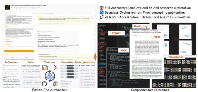 它既是一个工具,也是一个能够自主完成从文献调研、假设生成、算法实现到论文撰写全流程的 AI 科学家。实验表明,其所完成的学术成果在多个领域已经慢慢接近人类高质量研究水平。