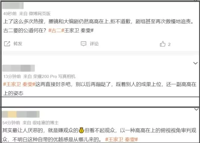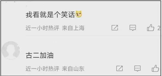不仅如此,从网友的态度看,虽然古二的抗争没有成功,但是只要发声就有意义,面对《繁花》新年热搜,评论区也是一边给古二加油,一边嘲讽《繁花》像个笑话。