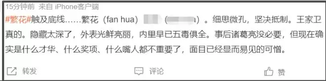 本来《繁花》是有机会凭借独特风格,成又一历久弥新经典剧集的,可惜因为秦雯和王家卫,外界提起《繁花》,更容易想到古二的录音,脑子里出现的是秦雯和王家卫“人前一套人后一套”的嘴脸。
