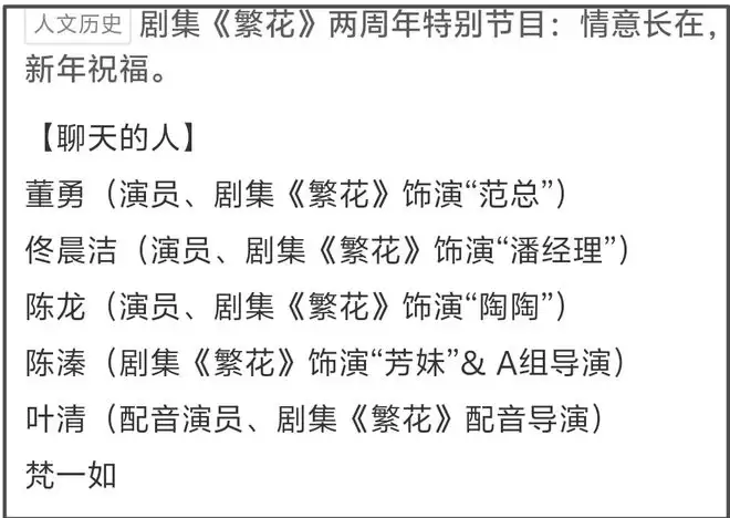 如今《繁花》庆祝播出二周年,就只有几个配角和几个非核心导演录制了一个播客,《繁花》官博都没有发宣传,最近一条动态更新还停留在2025年11月,内容是有关古二录音的严正声明。