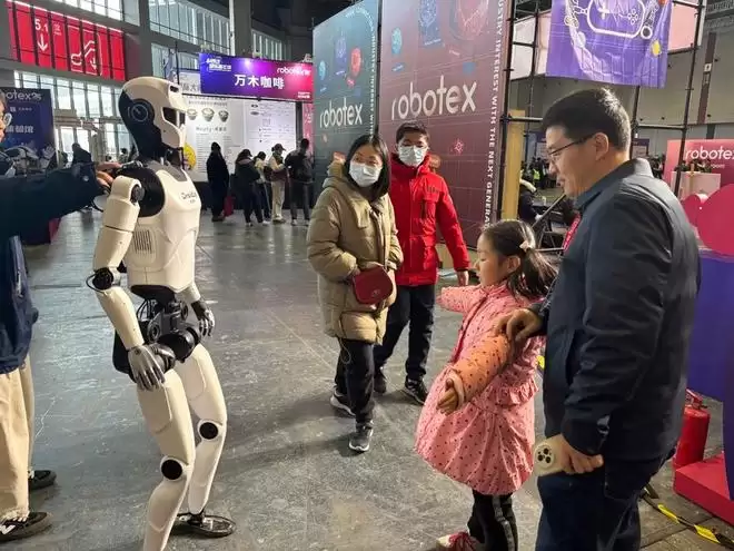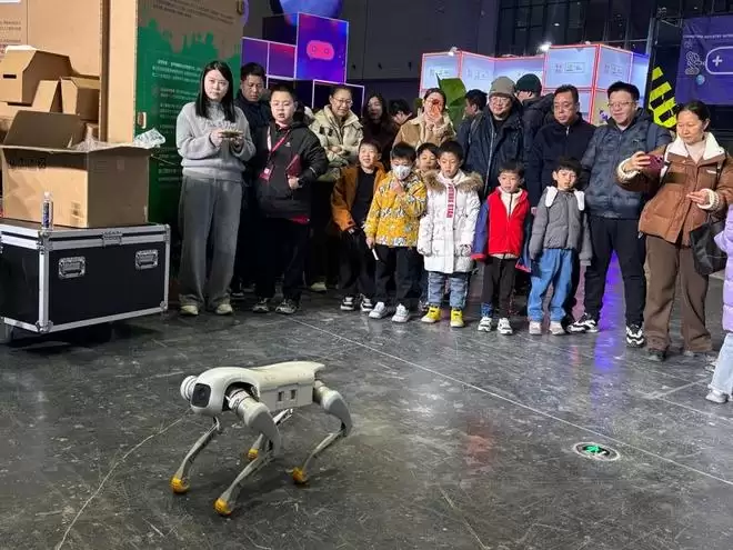最吸睛的“意念赛车”区前大排长龙,参与者戴上脑电波传感设备,仅凭集中注意力就能操控赛车风驰电掣,不少小朋友瞪大眼睛、屏住呼吸,感受“用思想开车”的神奇;机器人足球场里,世界杯级别的人形机器人精准走位、大力射门,与市民游客展开点球大战,欢呼声此起彼伏;极智战甲擂台上,体感操控的5分钟激斗热血沸腾,金属碰撞声让观众直呼 “过瘾”;机器狗敏捷赛专区,仿生四足机器人灵活穿越障碍、跑跳翻腾,成功挑战者还能收获精美纪念品,萌酷表现圈粉无数。