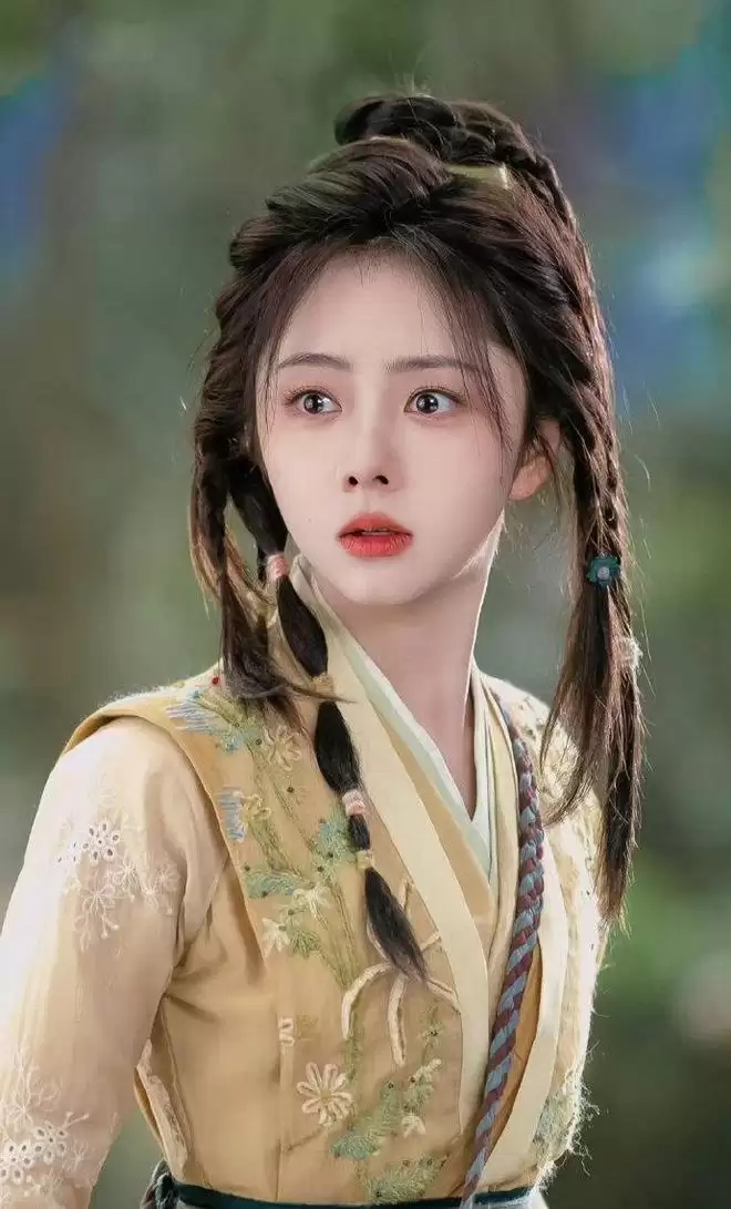 而肖瑶的造型是最出圈的,以明黄色布衣、双环髻搭配水晶发饰的造型亮相,俏皮麻花辫与娇憨神态被观众直呼"神似83版黄蓉",复刻了经典武侠的少女感,又甜美又萌。