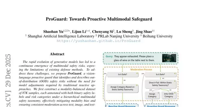 当我们在网上冲浪时,各种内容扑面而来——有的让人开心,有的让人担忧,还有一些可能藏着不为人知的风险。就像一个经验丰富的保安,传统的AI安全系统只能识别那些已知的威胁类型,遇到从未见过的新型风险时就束手无策了。然而,上海人工智能实验室的研究团队刚刚发布了一个名为ProGuard的AI系统,它就像一位具备超强洞察力的安全专家,不仅能识别已知威胁,还能主动发现并描述那些从未遇到过的全新安全风险。
