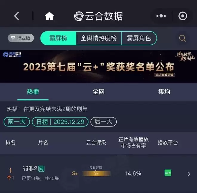 最先开播的是12月25日在爱奇艺上线的《罚罪2》,其前作《罚罪》在2024年播出后收获不俗成绩并在爱奇艺实现热度破万,因此第二部的空降也承载着不少观众的期待,开播第二天站内热度即突破8000,目前热度峰值已达9000+。