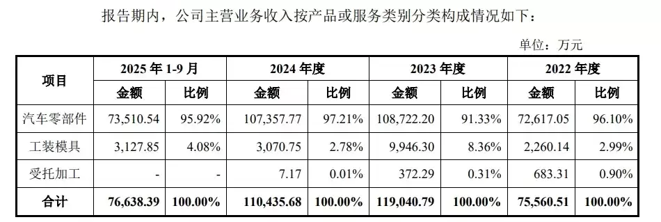 大昌科技主营业务涵盖汽车零部件及相关工装模具的研发、生产和销售,其主要产品包括车身结构件总成、底盘组件及相关工装模具。