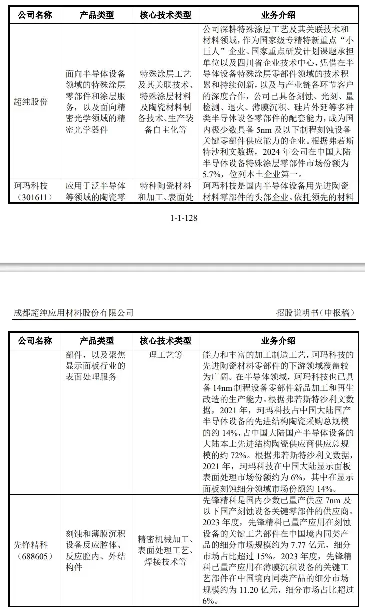 超纯股份是一家专注于特殊涂层工艺及其关联技术和材料的国家级专精特新重点“小巨人”企业。公司主要面向芯片制造、精密光学等领域,提供经材料改性、精密表面加工、精密清洗和特殊涂层工艺处理后的精密零部件产品及相关服务。