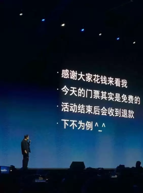 当时大家都觉得,这是罗永浩为了平息迟到引发的众怒,临时做出的补救措施。毕竟门票规则里写得明明白白“实名制、不退票、不选座”。
