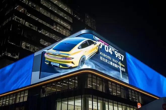 ▲小米总部屏幕上播放的SU7 Ultra。图 / 视觉中国