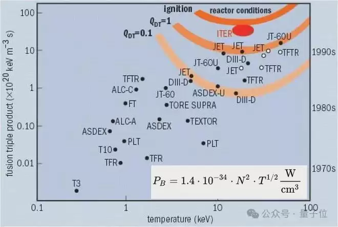 这是因为根据衡量核聚变能否发生点火及实现能量净增益的“劳森判据”(Lawson Criterion),聚变反应的发生条件取决于等离子体密度、温度以及能量约束时间的乘积