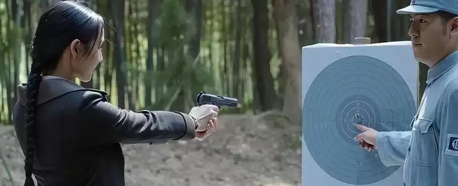 叶碧莹作为即将执行危险任务的特工,却在打中靶子后,捂着嘴笑嘻嘻的。