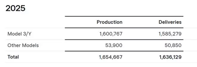当然,除了第四季度产量和交付数据下滑,在特斯拉发布的这份声明中,还提到了储能产品的业务增长:该公司在 2025 年 12 月季度交付了创纪录的 14.2 吉瓦时储能产品,而在 2025 年第三季度,其部署了 12.5 吉瓦时的储能产品。