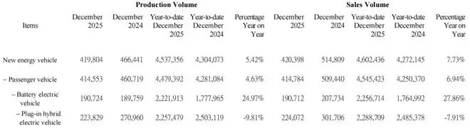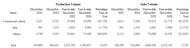 图丨比亚迪 2025 年 12 月总产量与总销售量(来源:比亚迪)