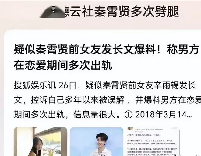 当时她卷入秦霄贤劈腿风波,与秦霄贤前女友辛雨锡联手发声,通过直播对峙、晒图等方式指控秦霄贤出轨。