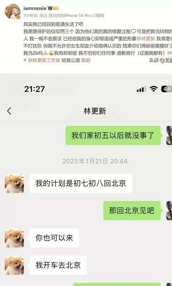 林更新、檀健次等人的内容更像顺手带上。对于林更新,她只拿出同款手链照片和一段密室监控截图,就直接宣布有过两年秘密恋情。