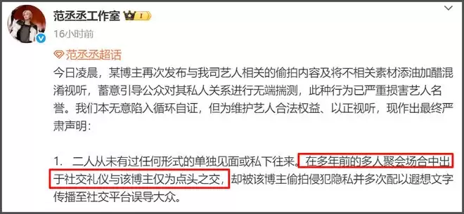 而范丞丞工作室对此的回应是,范丞丞与司晓迪没有单独私下往来,是在多年前的多人聚会中认识的“点头之交”。又是多人聚会,又是狗仔爆料夜店女老板介绍网红模特的,这也太巧了吧?
