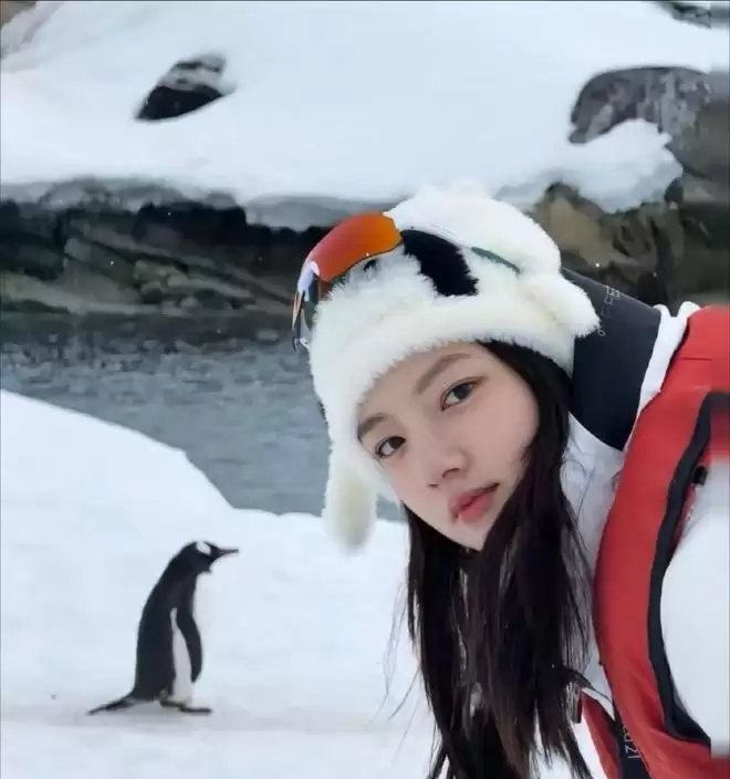 别的明星去南极打卡,要么拍出神秘的雪域风光大片,要么恨不得无限接近企鹅,认领回家当宠物,甚至不惜生理期还要下到冰洋里游泳。
