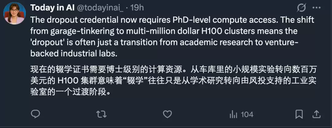 也有人指出,今天所说的“辍学”其实和早些年的情况已经完全不一样了,那些“辍学”的人只是换了个地方,还是继续做原来的事情,而且是在资源更丰富的工业实验室。