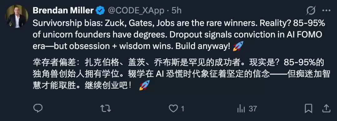 所以归根结底,“辍学”永远只是表象。真正决定成败的,是创始人能否在正确的时间窗口、用正确的资源、做正确的事。无论是拿着文凭走出校门,还是中途转身投入创业,学位从来都不是核心变量 —— 能力、判断力、时机,以及能否接入真正有价值的人脉和资源网络,才是关键。