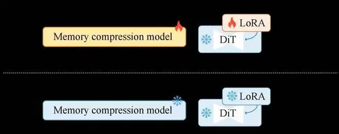 首先,预训练一个专用的记忆压缩模型,其目标是在任意时间位置上尽可能保留高保真帧级细节信息。