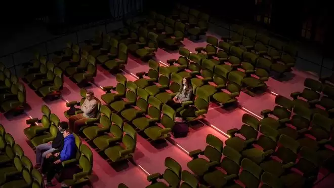 普拉达Prada今年在伦敦推出的"Prada Mode London"文化俱乐部项目,是奢侈品牌将超现实视角引入线下空间叙事的一次实践。与艺术家组合Elmgreen&Dragset合作的沉浸式装置"The Audience",将修复后的伦敦市政厅改造成一座超现实主义电影院:空间内循环播放一段刻意模糊的影片,与此同时,观众席上则安置着真人等比例的观众雕塑,有的全神贯注,有的明显走神。