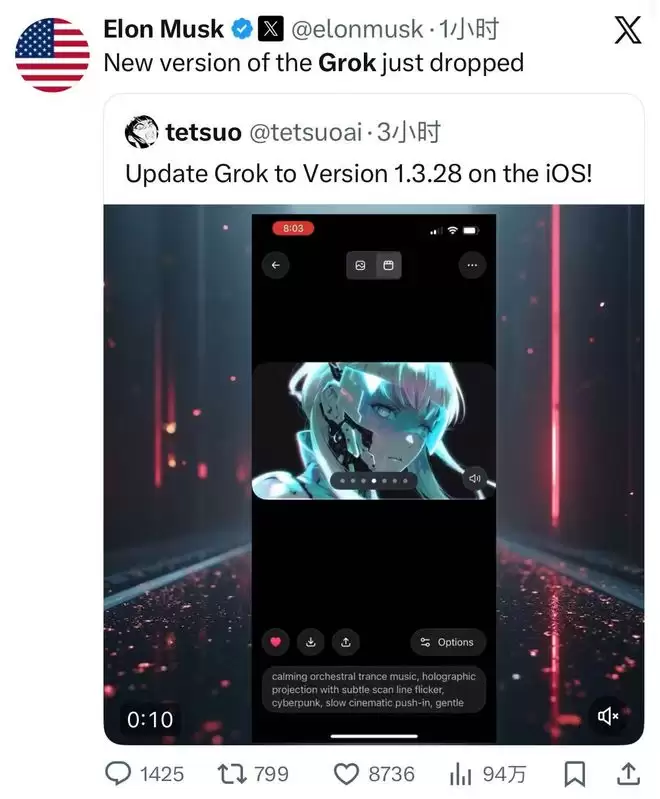 1月4日,特斯拉首席执行官埃隆·马斯克在社交平台X上宣布,人工智能助手Grok的新版本已正式上线。iOS用户现可将应用更新至1.3.28版本,体验最新功能。马斯克还在当日多次发帖透露,Grok+已在多个国家和地区的App Store排行榜上登顶,表现亮眼。通过Grok Imagine功能,用户能够将旧照片瞬间转化为动态视频,带来全新互动体验。