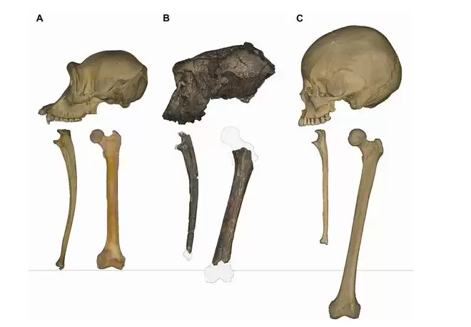 通过对编号为 TM 266-01-063 的左侧股骨化石进行高精度扫描,并将其与现代人类、现存类人猿(黑猩猩、大猩猩、红毛猩猩)以及其他古人类化石(如原人 Orrorin、地猿 Ardipithecus)进行全方位的对比,研究人员捕捉到了此前被忽视的关键解剖学细节。