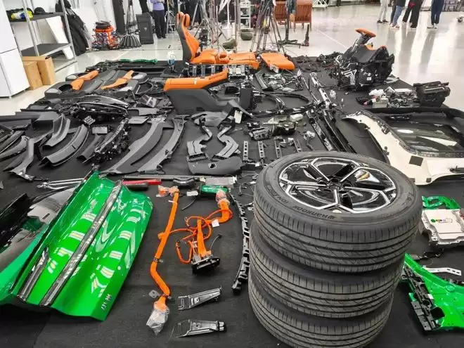 拆解流程分为拆卸四门两盖、移除内外饰、拆解底盘与三电系统、拆解前舱热管理及线束四个步骤,最终将车辆还原为“白车身”状态,像大家关心的门锁系统安全冗余设计、覆盖率约 74.4% 的铝合金前防撞梁;还包括地盘用料、悬架结构等,雷军都有一一向观众展示。
