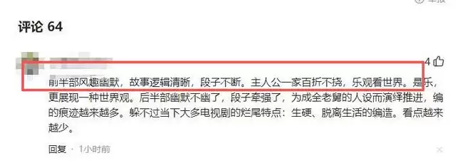 “这部剧后半段幽而不默,剧情开始变得生硬俗套导致烂尾。”