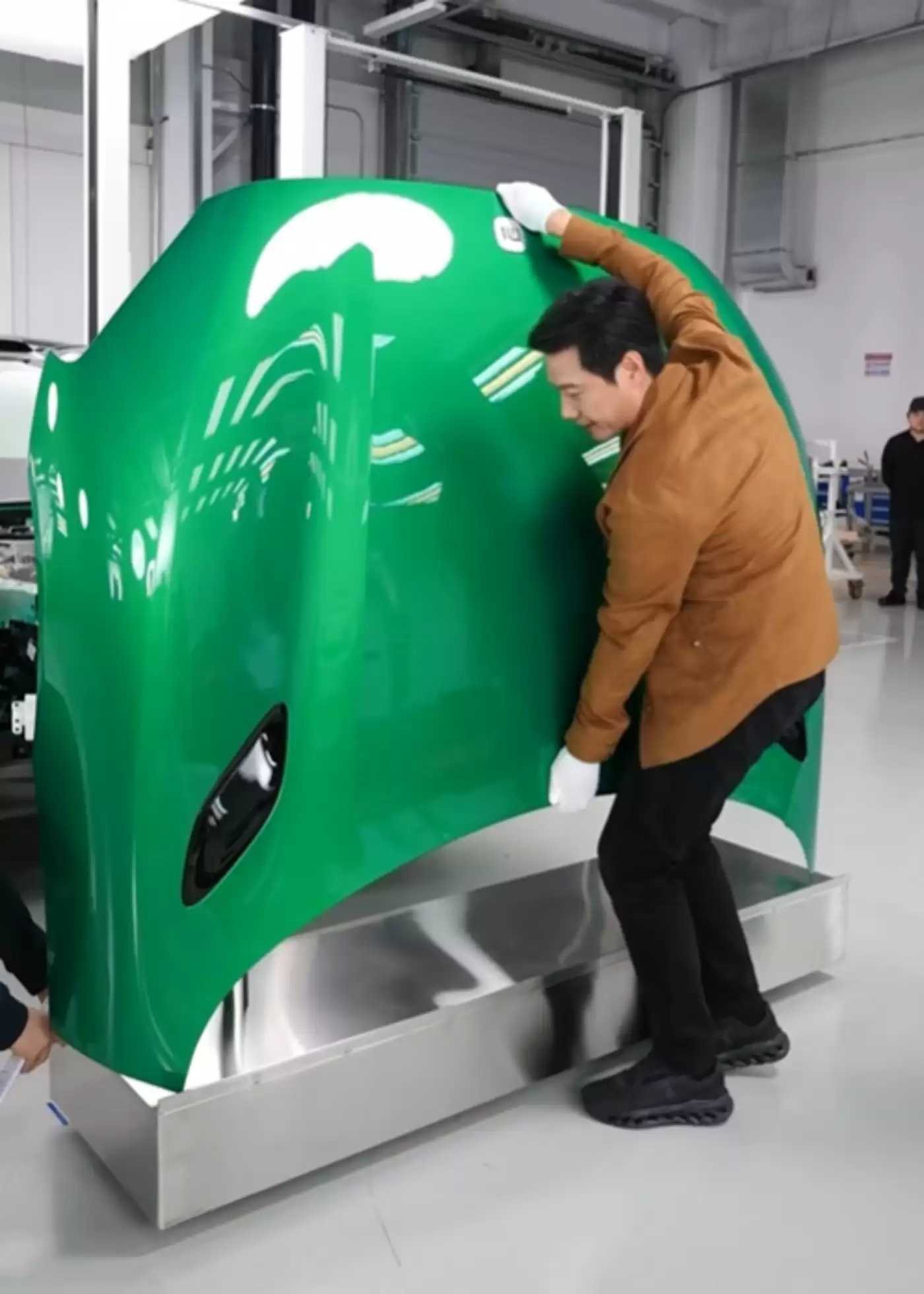 直播的前三个小时里,雷军面带微笑,淡定自若。他与小米不同部门的专家侃侃而谈,详细聊小米YU7的设计细节、做工配置、技术指标等,甚至还试着抱起了被拆下的发动机盖板,以证明这款车出色的轻量化设计。