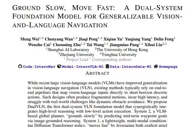 这项由上海AI实验室牵头,联合香港大学、浙江大学、清华大学等多家知名学府共同完成的重要研究,发表于2025年12月。研究团队提出了名为DualVLN的双系统视觉语言导航模型,这是该领域首个采用"快慢结合"架构的基础模型。有兴趣深入了解的读者可以通过论文编号arXiv:2512.08186v1查询完整论文。