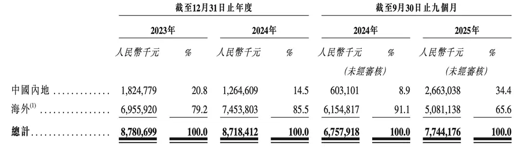 值得注意的是,自2024年至2025年9月30日期间,宏芯宇超过65%的营收来自海外市场。