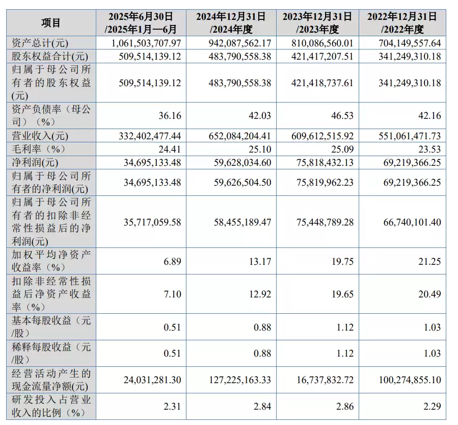 财务数据显示,从2024年至2025年上半年,培源股份实现的营业收入分别为5.51亿元、6.1亿元、6.52亿元和3.32亿元;同期净利润分别为6921.94万元、7581.84万元、5962.8万元和3469.51万元。尽管2024年净利润出现小幅波动,但公司整体营收规模仍保持增增长态势,显示出较强的市场适应能力。