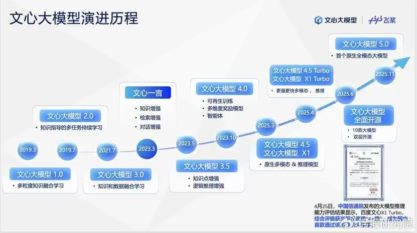 百度的技术布局远不止于芯片领域。在AI全栈能力构建上,百度已形成覆盖“芯片-大模型-云服务-应用-生态”的完整链条。文心大模型5.0参数量高达2.4万亿,在语言理解、图像生成等维度与全球顶尖模型持平,其智能云业务在2025年第三季度收入同比增长33%,服务覆盖游戏、金融、智驾等十余个行业,在智算解决方案市场份额达到19.9%。AI应用领域,百度搜索、网盘、文库等核心产品已完成AI重构,网盘AI功能月活跃用户超8000万,文库智能PPT功能月访问量达3400万,二者联合推出的“沧舟OS”成为全球首个专注于内容创作领域的操作系统。