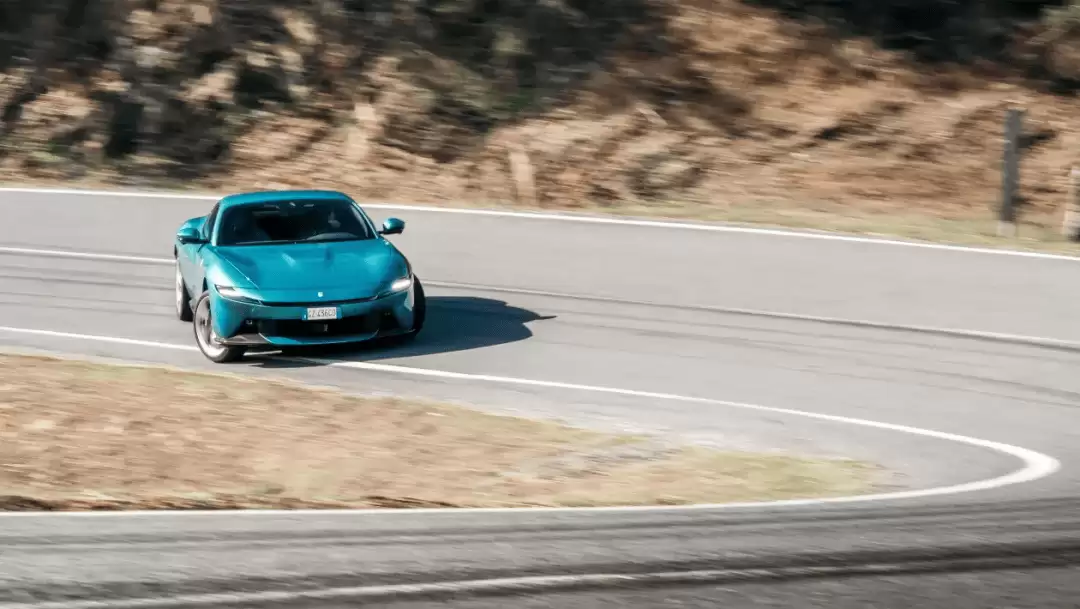 底盘调校目标实现比Roma更广泛的性能覆盖范围,动态侧滑控制系统6.1版本经过重新标定,五种驾驶模式间的差异显著增强。湿地或舒适模式下,悬挂柔和调校与油门平顺响应轻松应对复杂路况,滤震动作干净利落,舒适性可与保时捷911 Carrera媲美。动力输出虽不以低扭强劲见长,但充足的动力储备与双离合变速箱的平顺换挡,使其完全具备日常通勤的实用性。
