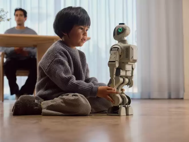 与此同时,元点智能还在美国市场推出了一款体型更小巧的人形机器人M1。其高度约为38.1厘米,起售价为2899美元,定位为家庭陪伴设备。M1内置谷歌的Gemini模型,可进行自然对话交互,并提供事项提醒、跌倒检测及查看家庭成员状态等功能。
