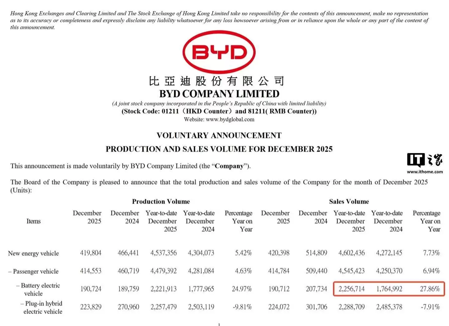 国际市场方面,比亚迪的全球布局再传捷报。据英国BBC报道,基于品牌最新数据,比亚迪2025年纯电动车交付量达2,256,714辆,较2024年的1,764,992辆增长27.86%,首次超越特斯拉登顶全球纯电年度销量冠军。这一成绩不仅巩固了其在中国新能源市场的领先地位,更标志着中国品牌在全球电动车竞争中迈出了关键一步。