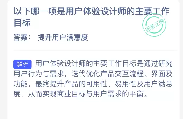 支付宝蚂蚁新村答题:用户体验设计师的核心目标解析