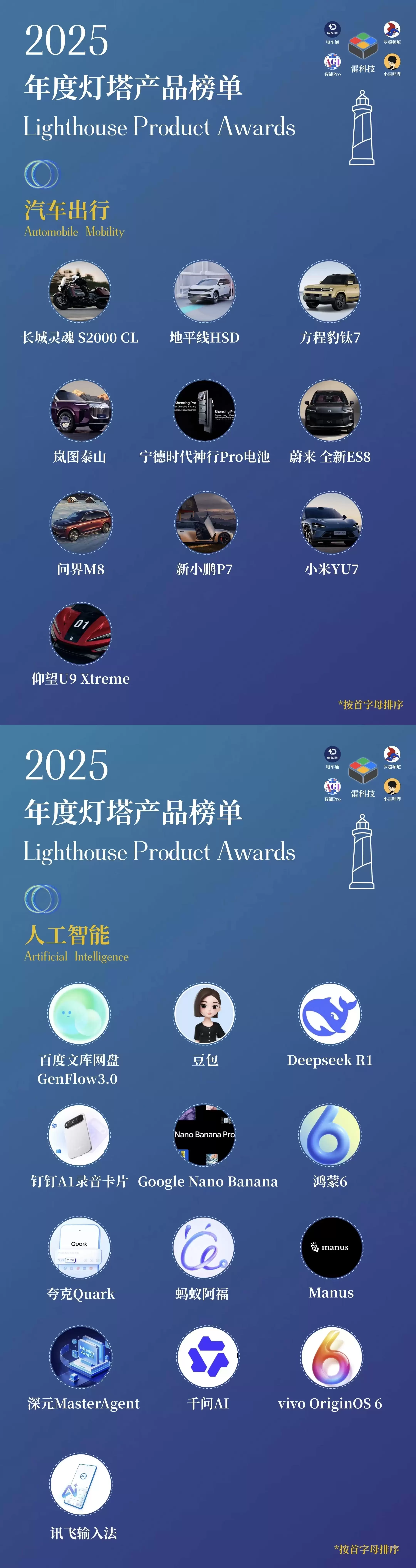 雷科技“2025年度灯塔产品榜”正式揭榜!收录47款科技创新大作,致敬值得被铭记、且将持续引进行业前进方向的标杆级产品。