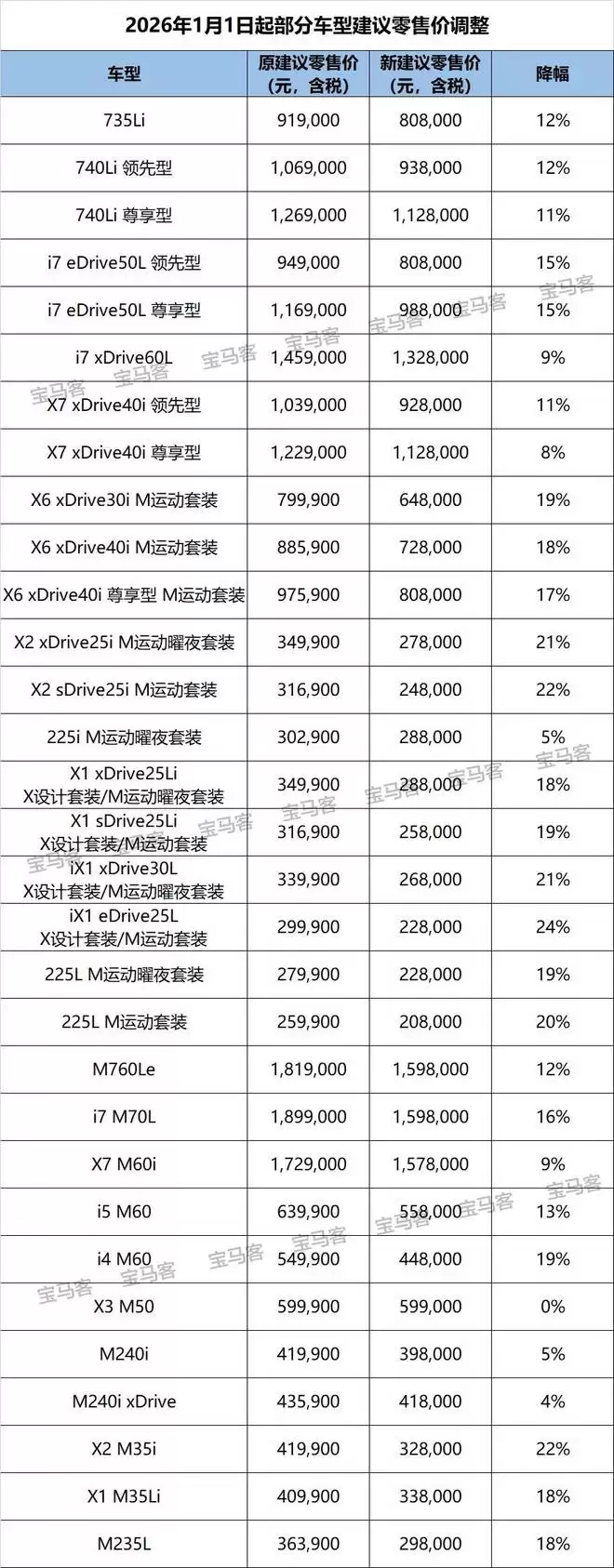 2026 年的第一天,宝马来了一波大降价,从入门级到旗舰级,共涉及 31 款车型。
