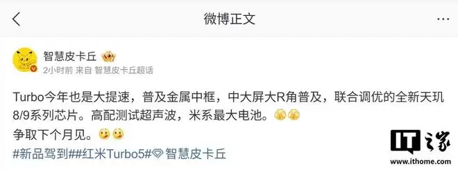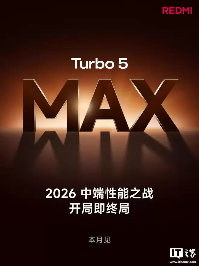 1月5日,据IT之家报道,小米Redmi Turbo系列手机迎来新成员,官方已宣布Redmi Turbo 5 Max将于本月正式亮相。