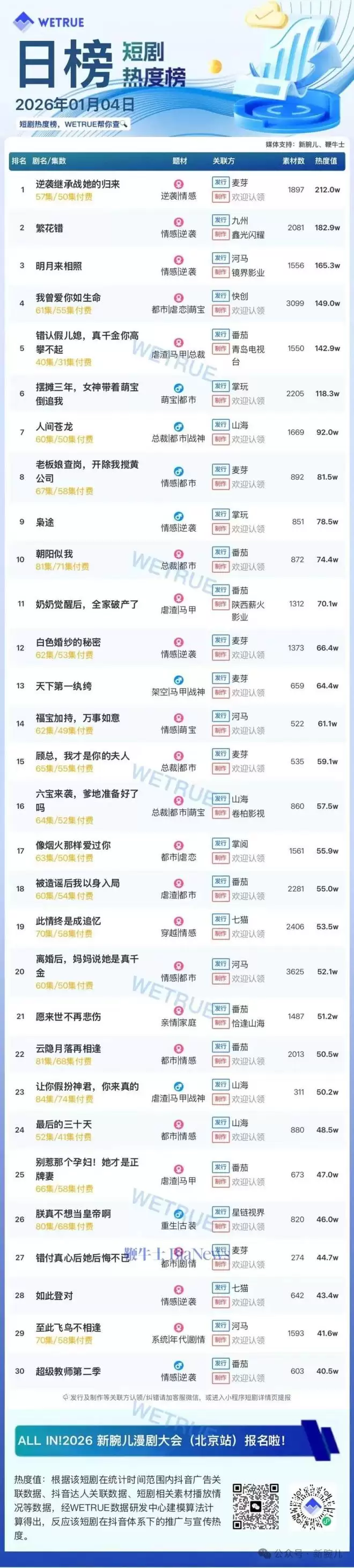 复盘短剧热榜:《逆袭继承战》归来榜首,大盘4135万热度