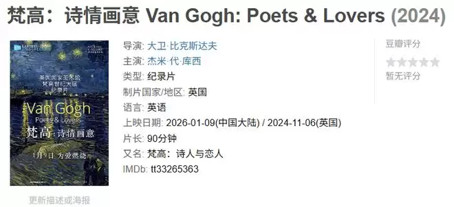 这是分线电影,想看的自己关注周边影院情况吧。关于梵高和他作品的纪录片,属于为展览配备的导赏型纪录片。