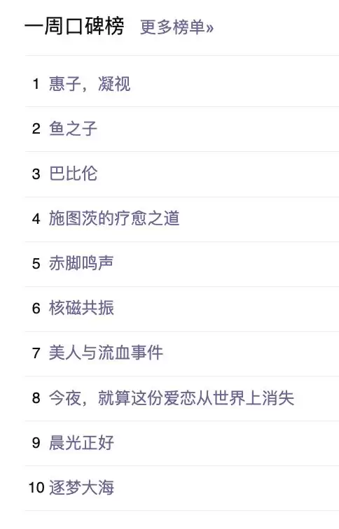 最后,还是例行附上一周豆瓣口碑榜的完整榜单: