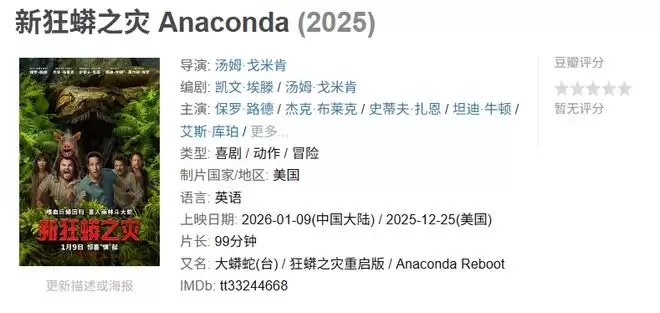 这是惊悚片《狂蟒之灾》的新版,保罗·路德与杰克·布莱克共同出演,属于那种冒险+搞笑的娱乐片。