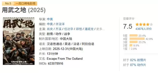难得有部院线片上榜,申奥导演的《用武之地》虽然票房完全不行,但豆瓣评分还凑合。
