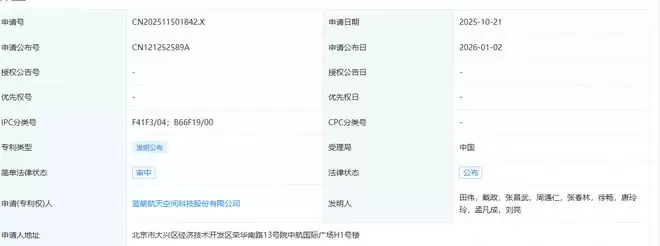 除了此项专利外,蓝箭航天近期申请的“轴承载试验装置”专利同样获得公布。