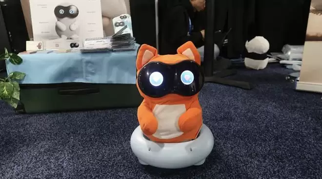 据介绍,Cocomo被定位为一款能够自主移动的“机器人宠物”。它可以在家中跟随主人行动,并通过语音和触摸与人互动。机器人的移动主要依靠轮式底盘,而在展会现场展示的版本还穿着一套橙色外衣,配上类似耳朵的装饰,整体设计极具亲和力。