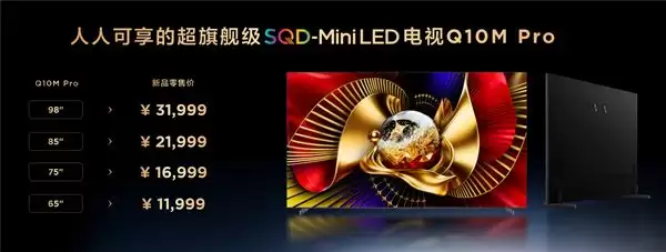 TCL Q10M 98吋、85吋、 75吋、65吋零售价分别为24999元、15999元、12999元、9999元。